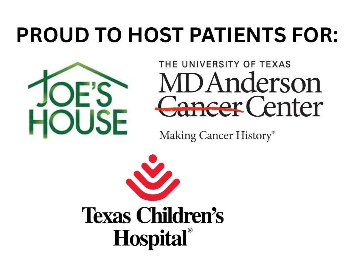 Check out our listings on the TMC lodging list, Joe’s House and Texas Children’s Hospital websites.